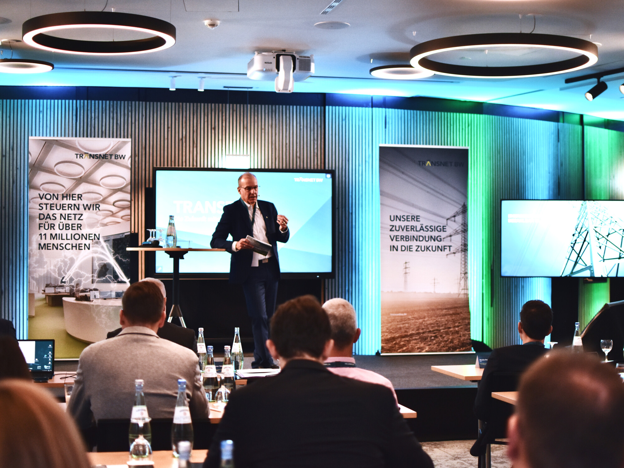 Am folgenden Konferenztag standen Vorträge und Diskussionen auf dem Programm: TransnetBW-Geschäftsführer Dr. Werner Götz startete mit einem Überblick zur aktuellen Lage von TransnetBW. Er adressierte insbesondere die aktuelle Herausforderung zahlreicher Netzanschlussbegehren. Zudem betonte er, wie wichtig es sei, dass das Generationenprojekt Energiewende bezahlbar bleibt: „Wir als TransnetBW bringen uns hier mit konstruktiven Vorschlägen zur Kostenreduktion ein – zum Beispiel, wie Flexibilitäten großer und kleiner Lasten intelligent genutzt werden können, um Redispatch-Kosten zu senken.“