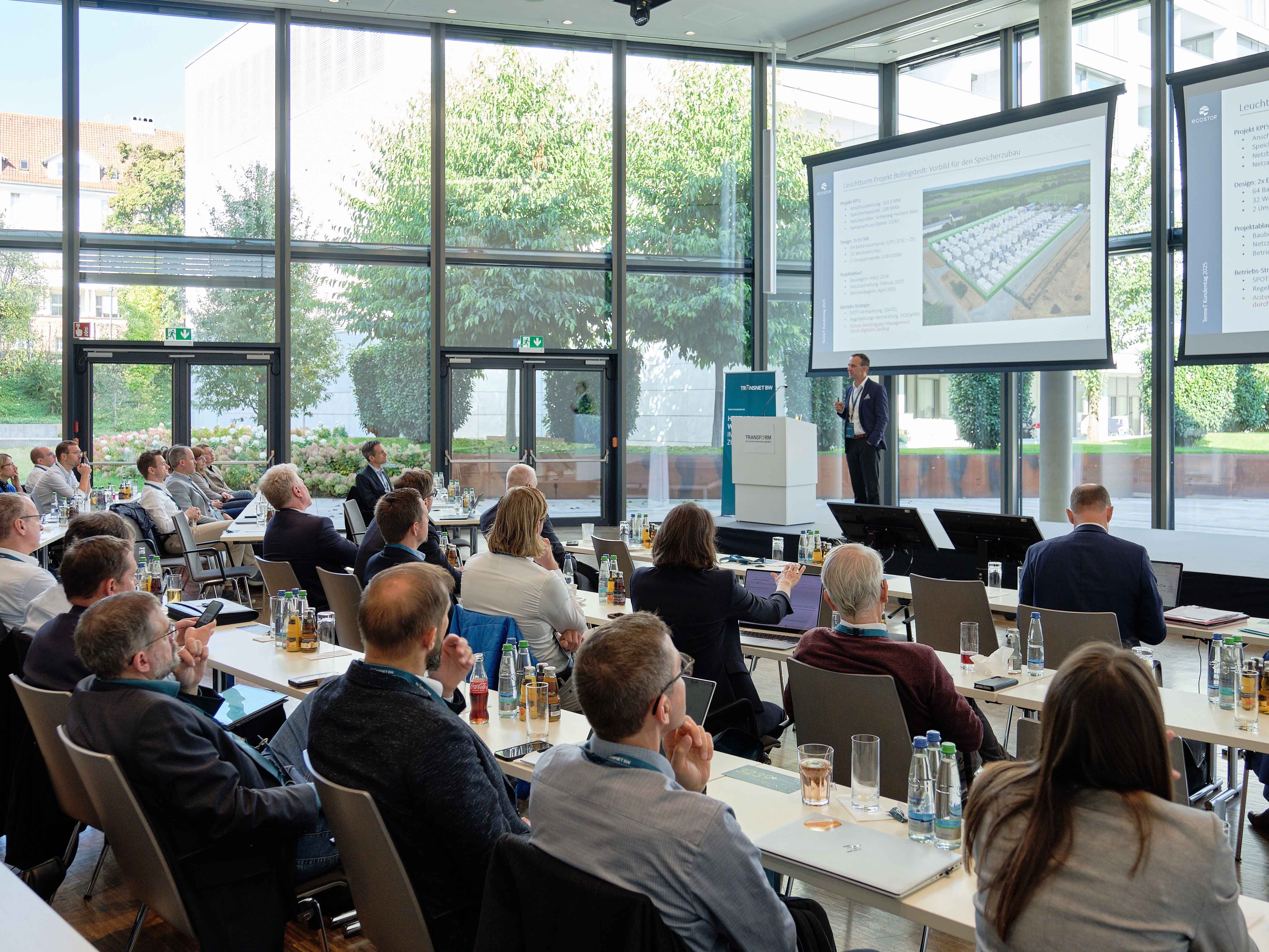 Am 01. und 02. Oktober 2025 fand die TransnetBW-Kundenveranstaltung TransFORM 2025 statt. Zahlreiche Teilnehmerinnen und Teilnehmer sind erneut der Einladung des Fachbereichs Netzwirtschaft und Digitalisierung gefolgt und kamen in Stuttgart zusammen, um sich über energiewirtschaftliche, rechtliche und regulatorische Themen auszutauschen. Auch die Besichtigung der Hauptschaltleitung in Wendlingen stand in diesem Jahr auf dem Programm.